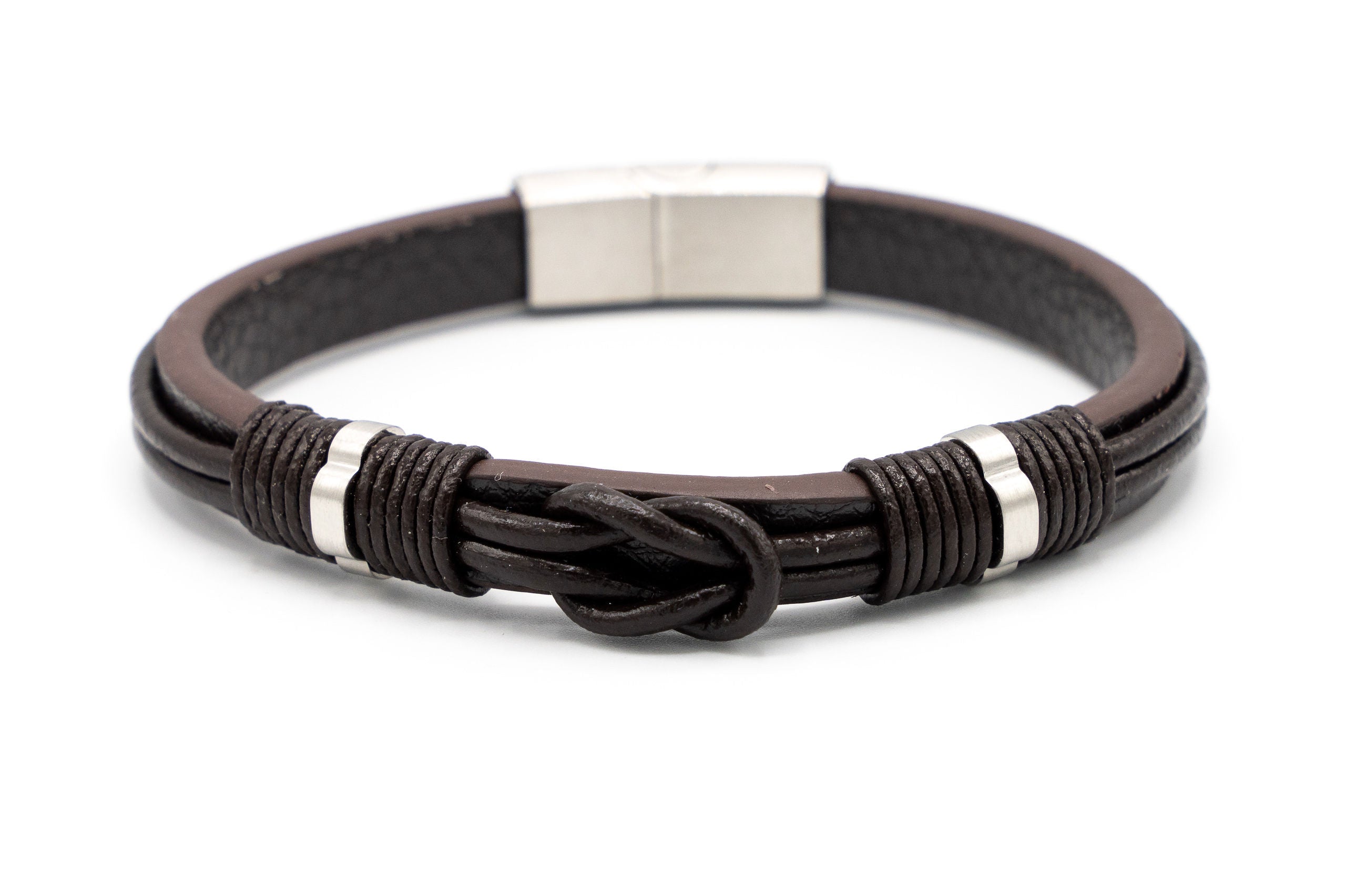 BRACCIALE UOMO ACCIAIO E CUOIO INTRECCIATO IS05-21