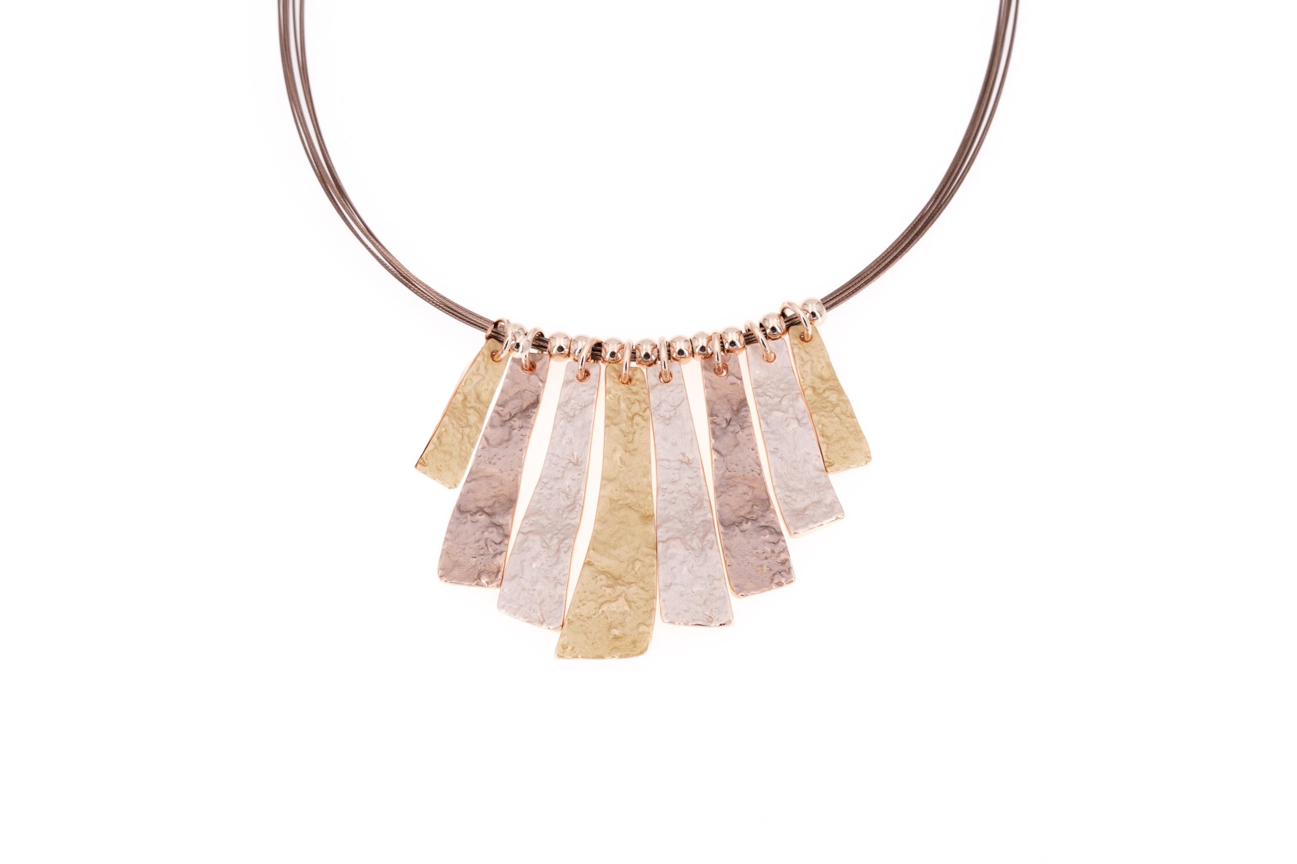 COLLANA FILI ACCIAIO CORTA ZAMA NOVE BARRETTE MARTELLATE QE3670